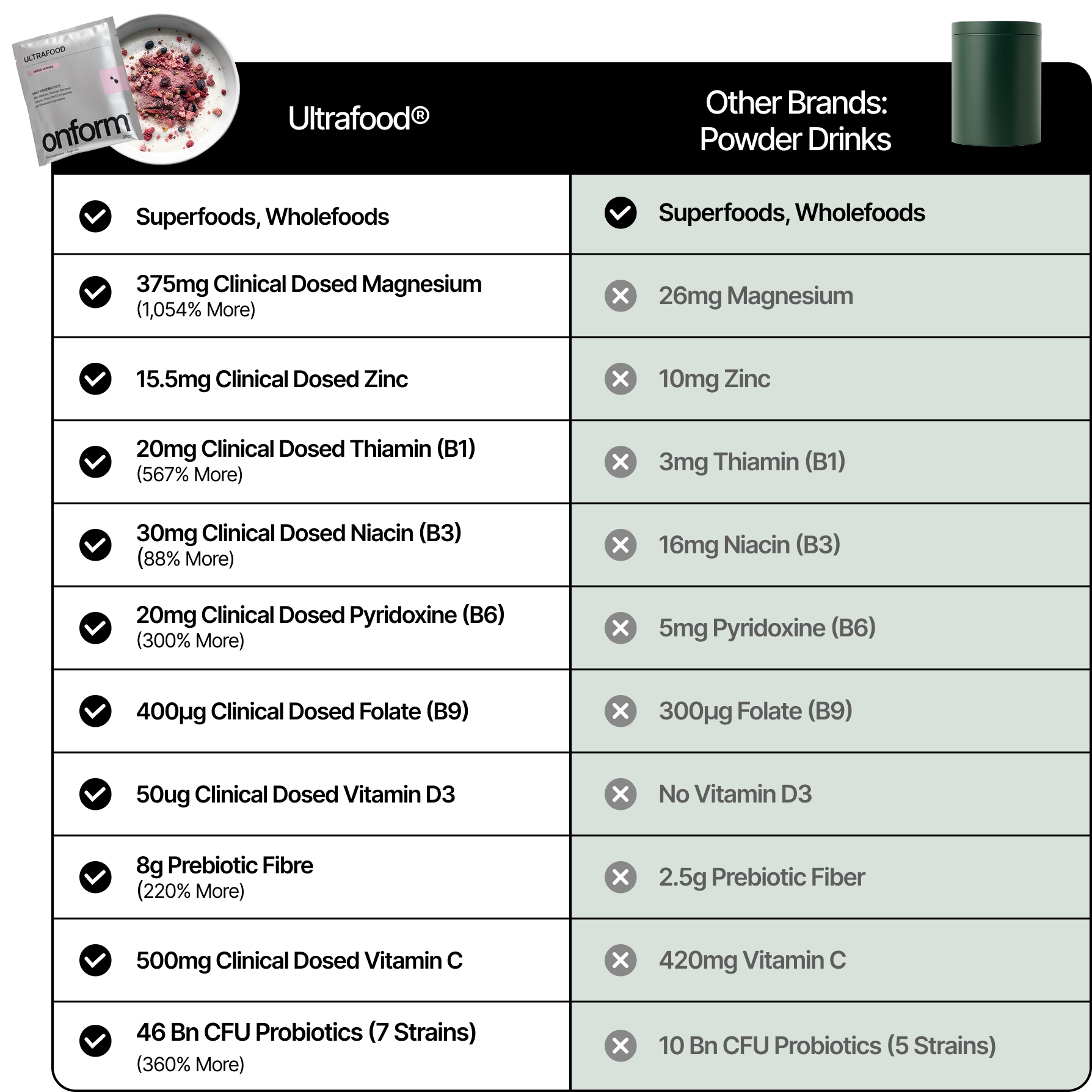 Ultrafood combines the benefits of multiple supplements into one daily blend. Here’s what it can replace: