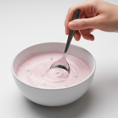 The blend includes visible pieces of berries that add a subtle chew and texture, giving each spoonful bite and dimension.